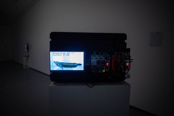 Visitors can observe the slowly burning still life by watching it in real-time on the video panel placed on the boxes. But the main activity remains hidden and takes place at the molecular level. Its tangible manifestation is a monotonous soundtrack performed by the fruits themselves. Information about the external appearance of each fruit is converted into sound waves. The processes inside the box are analyzed and sonified by an analog synthesizer. The sound pitch and timbre depend on temperature, humidity, fruit size and color. As the fruit burns up, the sound “burns up” as well and becomes increasingly dull and quiet.