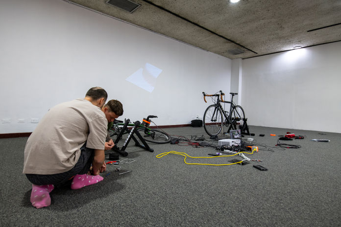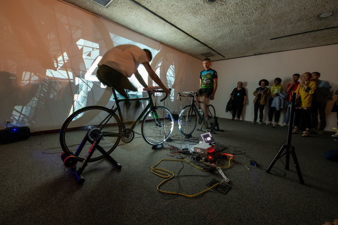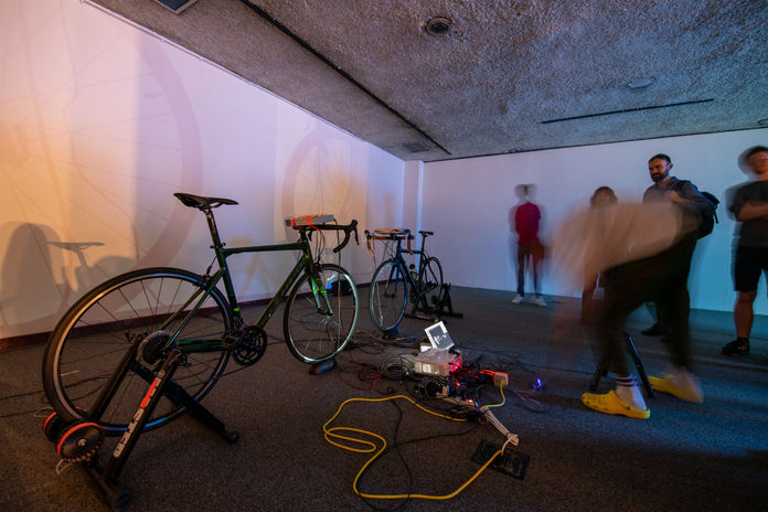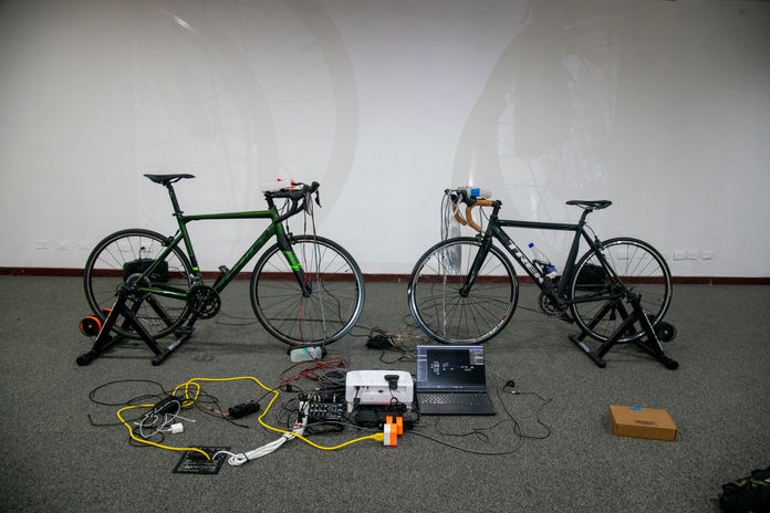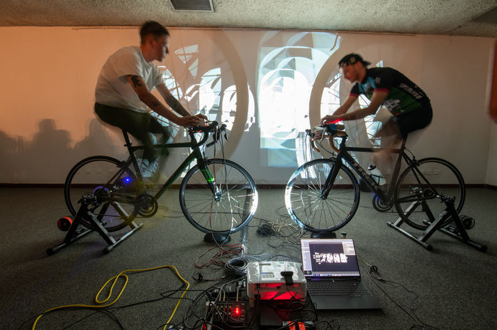 The artists on the bikes regulate the sound and rhythm by their pedaling, and together create the final work. How the “symphony” is performed depends on the motion of both cyclists. The intentions and aspirations of the participant acquire sonic expression. They may become synchronized, and try to turn the pedals in the same rhythm, to be in harmony. Or they may intentionally disturb this and cause harmonic fluctuations, creating complex combinations of sounds that arise when movements are not synchronized.