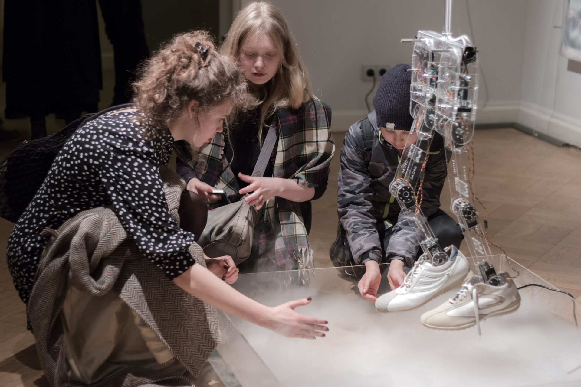 shoes, electronic systems, motors, plexiglass, steel, distilled water, nebulizers, dim. 100x100x100cm