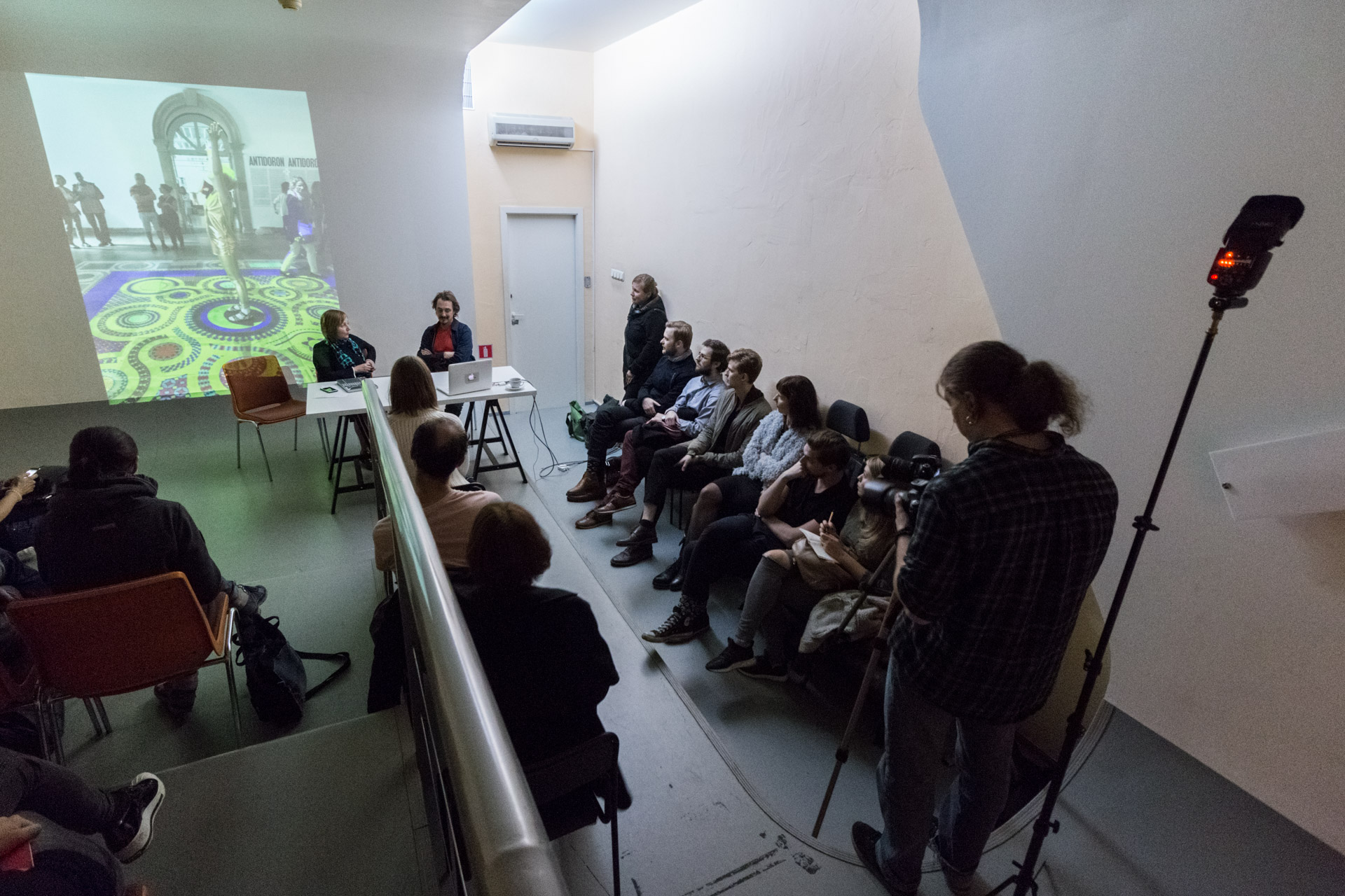 The conversation  was held between Olesya Turkina, Ph. D., critic and curator, Senior Research Fellow at the State Russian Museum, St Petersburg, Head of MA Program in Curatorial Studies and Associate Professor on the Faculty of Liberal Arts and Sciences, St. Petersburg State University, and Peter Belyi, artist, curator and lecturer. with participation from general public.