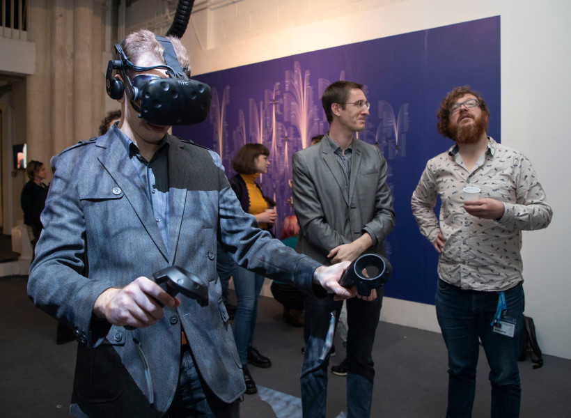 Vision: An exhibition exploring the twilight world between human and machine creativity. The exhibition shows works by selected artists linked to Goldsmiths and artists from the CYLAND MediaArtLab based in St. Petersburg, Russia. Developed in association with the Youth Education Center at the State Hermitage and The Leonardo Journal, the works shown will include Virtual Reality Installations, Sculptures, Computer Art Installations, Video Art Installations and Machine Learning Art.