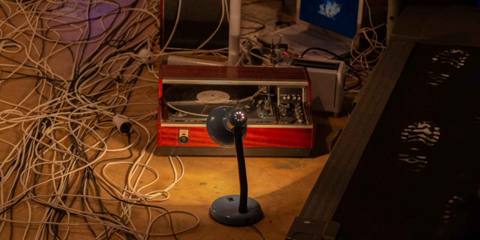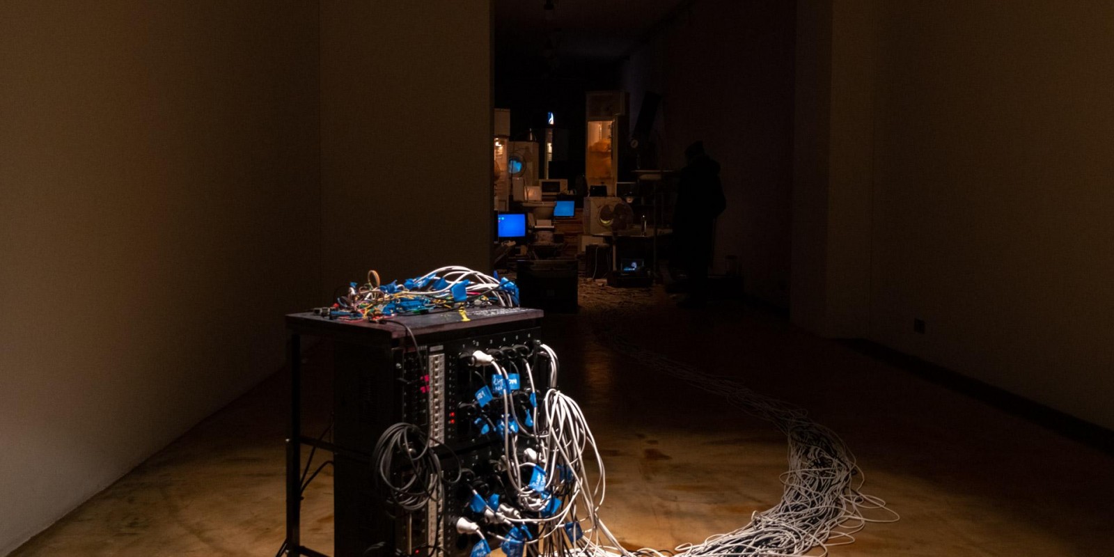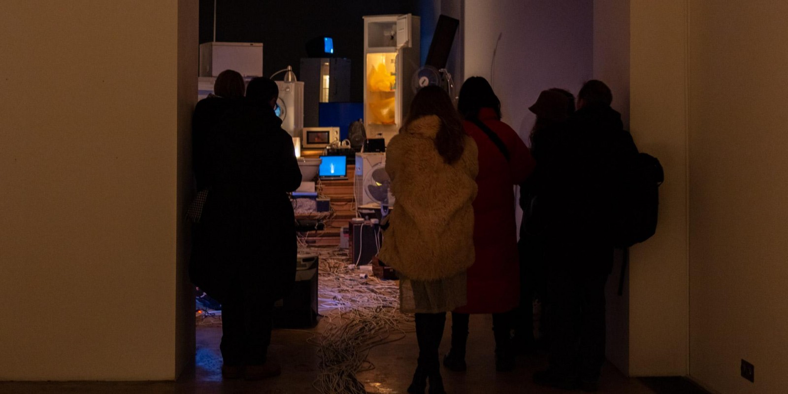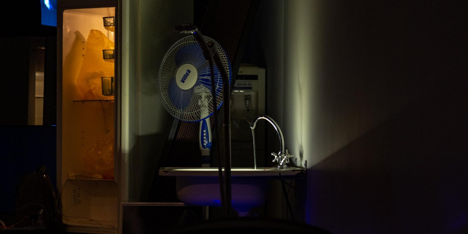 Marina Alekseeva has always been interested in the social structures of contemporary society, which the artist has explored through the prism of the physical and material environment of human habitation. A new joint project with Vladimir Rannev reflects back on a series of Alekseeva’s lightboxes from the 2000s that recreated miniature versions of the interiors of various religious buildings, from a cathedral to a mosque and an Orthodox church. The subject under examination in the total installation “The Whole Shebang” is the main temple of the modern human — their home, filled to the brim with devices and gadgets.