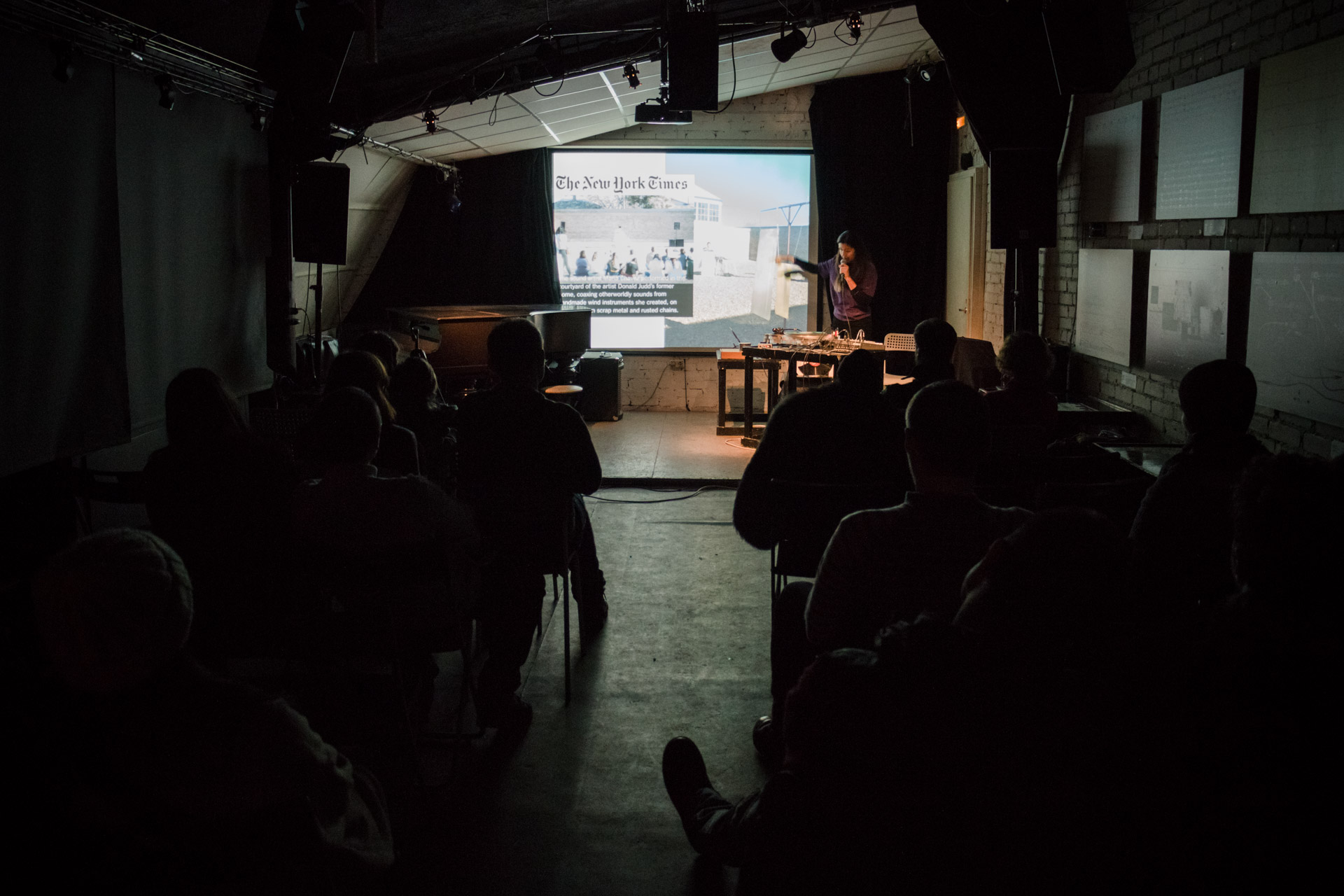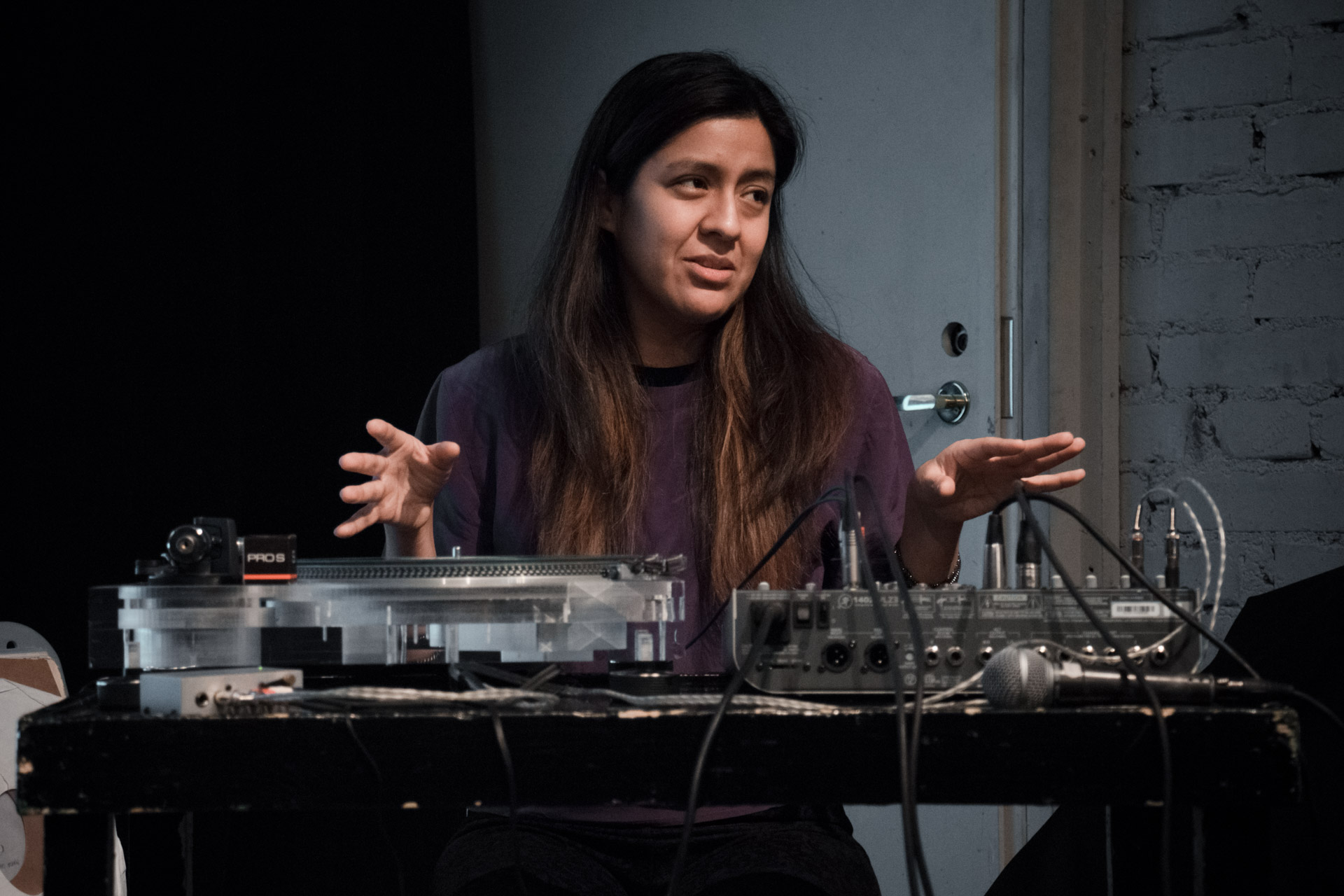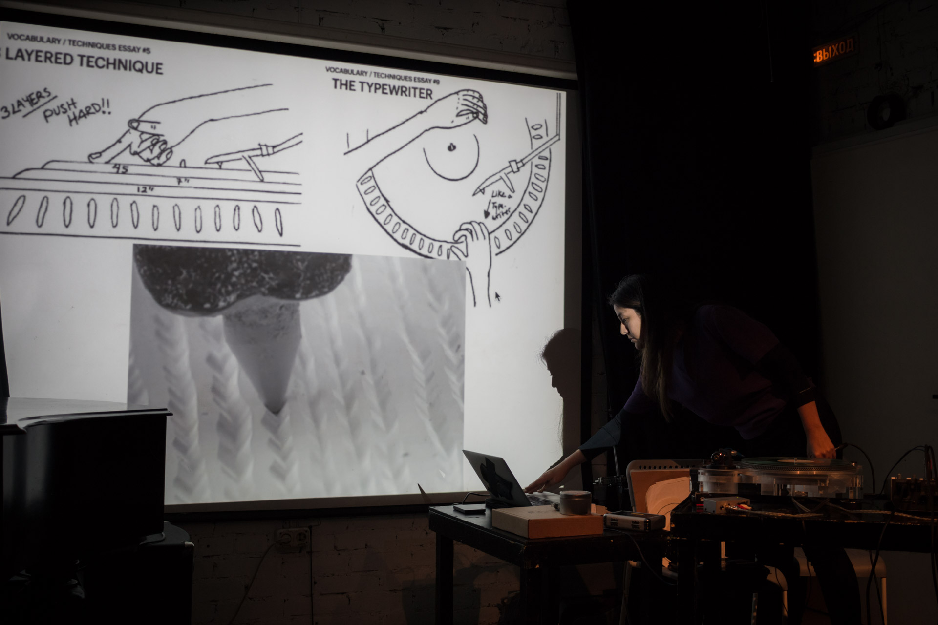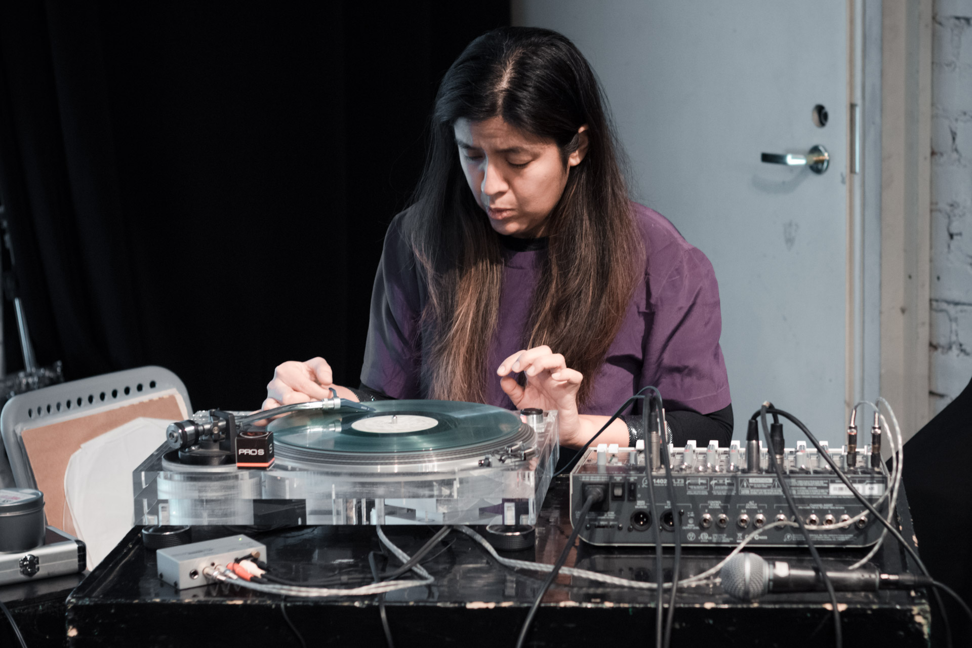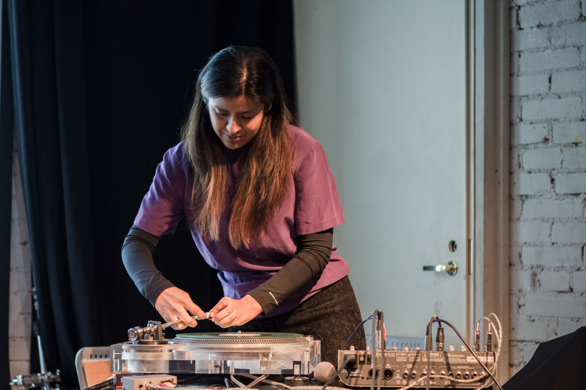 The lecture combined a lecture with a performance of recorded sounds from vinyl records with the electroacoustic sounds of vinyl and needle in various deteriorating phases. This approach merges the practice of improvisation with the inherent unstable conditions of a turntable, allowing accidents to dictate each sound piece. Audience members will be invited to try different techniques.
